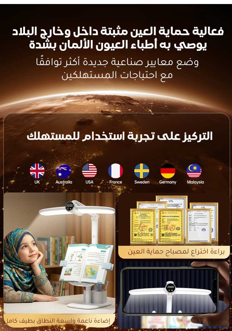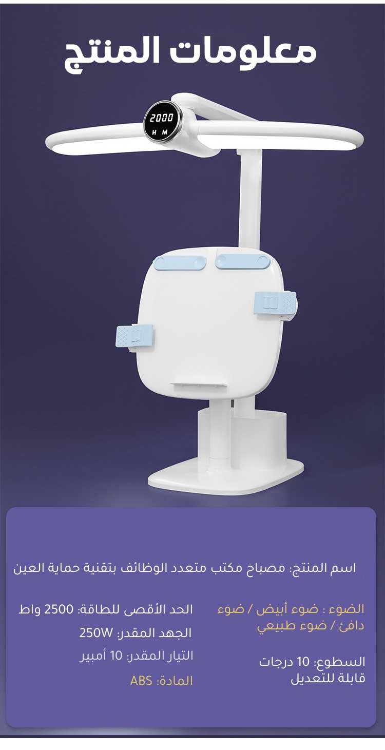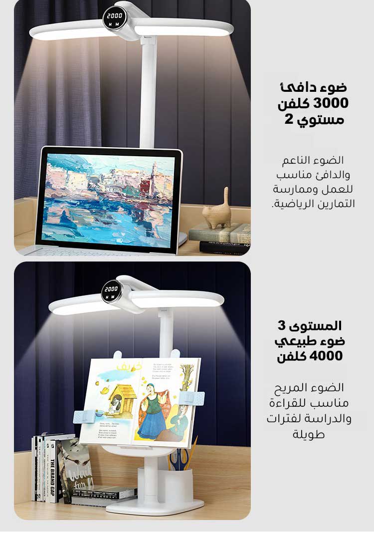 مصباح مكتب متعدد الوظائف بتقنية حماية العين مع حامل كتب